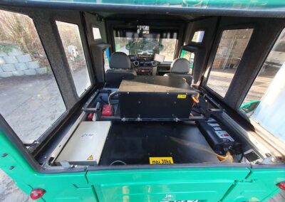 Wir bieten zum Verkauf eine elektrisch angetriebene Wegebahnen- Zugmaschine des Herstellers „STS Funtrain“.Vom Hersteller STS Funtrain in Klagenfurt (A) auf Basis eines Landrover Defender 90 mit Elektroantrieb ausgeliefert.Die gesamte Antriebseinheit mit Nebenaggregaten (Lenkservo, Luftpresser, Heizung, Systemsteuerung, Ladegerät) wurde in 2016 durch eine sparsamere und zuverlässige Einheit ersetzt. ! Antriebsbatterien sind neu !